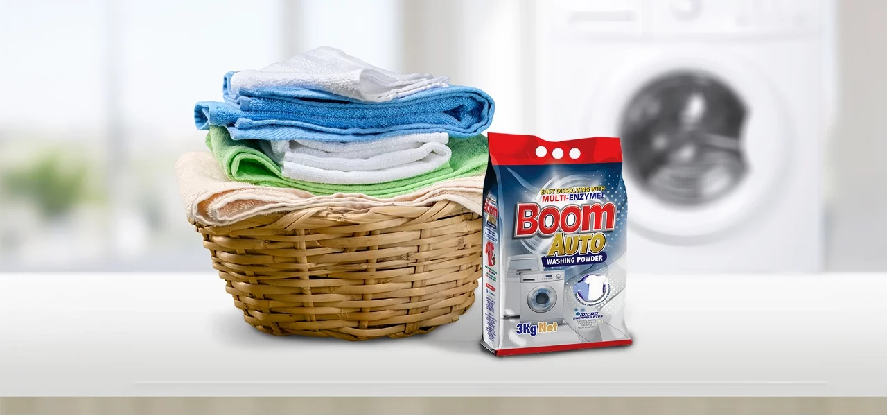 Boom Auto Washing Powder gives garments a machine wash as good as mom’s hand wash. Whether in front or top-loading machines, our potent multi-enzyme formula penetrates deep into fabrics, providing a meticulously clean and effortlessly tackling a spectrum of stains. Enriched with “Active Oxygen,” Boom Auto Washing Powder brings back vibrant colours and rejuvenates whites, eliminating the need for soaking or scrubbing.