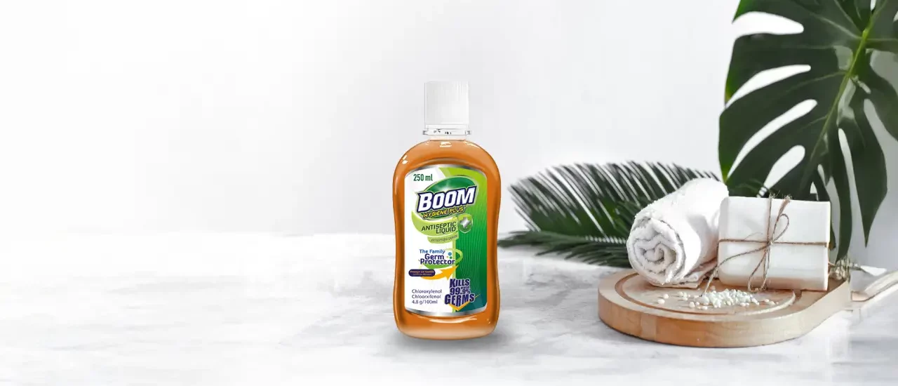 Boom Hygiene Plus Antiseptic Liquid is the epitome of family germ protection. Infused with chloroxylenol, Boom Hygiene Plus Antiseptic Liquid is approved by medical experts and adored by mothers. It eradicates 99.9% of known germs and is versatile for wound care, bathing, and household disinfection. Hygiene with Boom is the go-to solution for clean, healthful living.